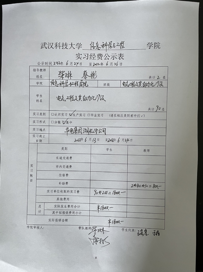 2019級電氣工程及其自動(dòng)化專(zhuān)業(yè)實(shí)習經(jīng)費公示表