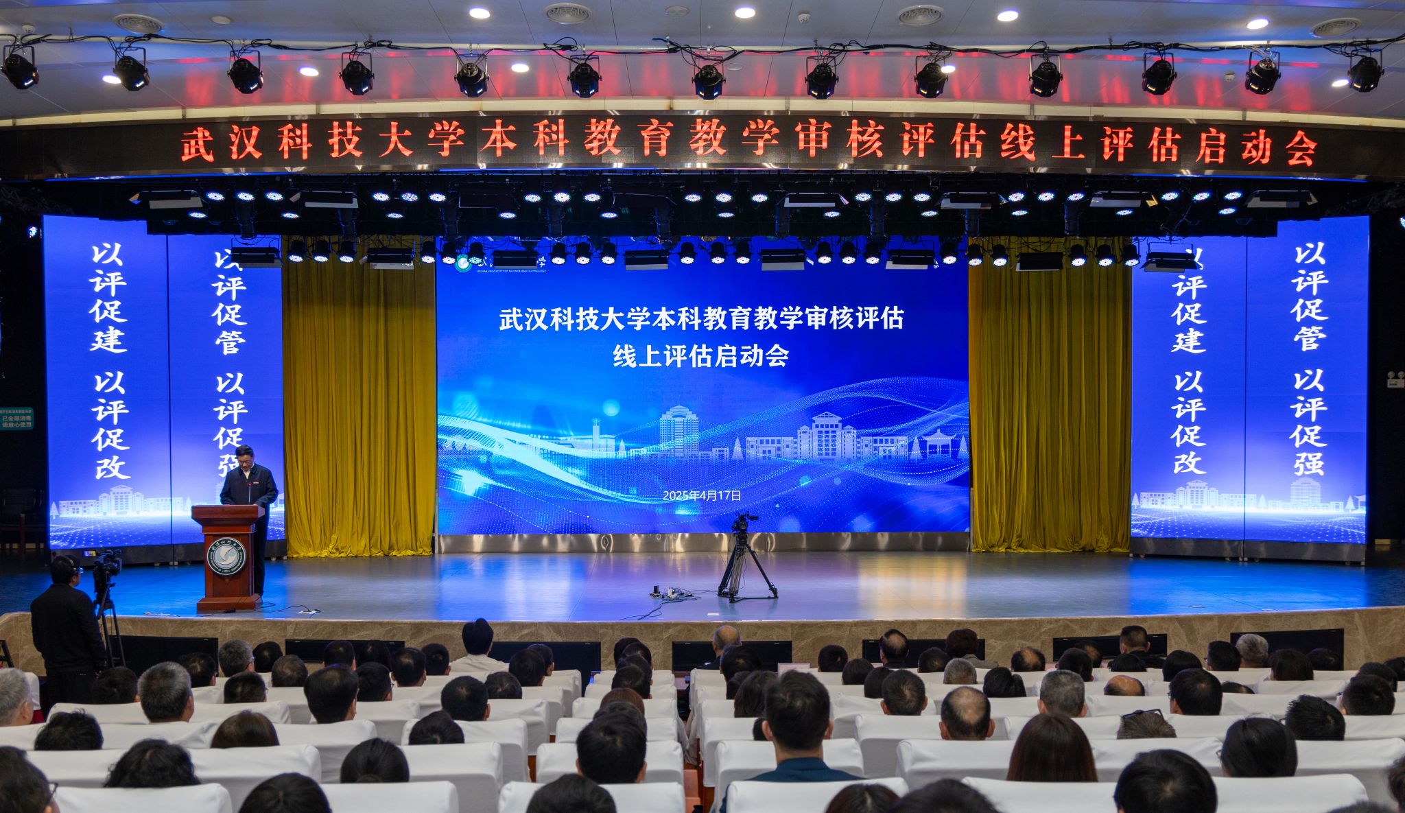 倪紅衛以《以立德樹(shù)人為根本,以學(xué)生發(fā)展為中心,著(zhù)力培養具有“鋼鐵品質(zhì)”的高素質(zhì)人才》為題,從本科教育教學(xué)情況、自評自建開(kāi)展情況、自評報告補充說(shuō)明三個(gè)方面報告學(xué)校有關(guān)工作。他指出,近年來(lái),學(xué)校立足高水平教學(xué)研究型大學(xué)建設,全面落實(shí)立德樹(shù)人根本任務(wù),秉持“學(xué)生中心、產(chǎn)出導向、持續改進(jìn)”教育理念,構建多樣化人才培養體系,著(zhù)力培養具有“鋼鐵品質(zhì)”的高素質(zhì)人才。一是堅持五育并舉,強化思想政治教育引領(lǐng);二是實(shí)施綜合改革,大力推進(jìn)創(chuàng )新人才培養;三是加強雙創(chuàng )教育,深化科教融匯產(chǎn)教融合;四是優(yōu)化專(zhuān)業(yè)調整,促進(jìn)人才培養供需適配;五是強化質(zhì)量管理,健全教學(xué)質(zhì)量保障體系。他表示,本輪審核評估工作開(kāi)展以來(lái),學(xué)校先后調研省內外數十所高校,全面復盤(pán)找差距,對標對表促提升,學(xué)校教學(xué)管理制度不斷健全,教學(xué)設施環(huán)境不斷改善,教學(xué)教研氛圍不斷濃厚;學(xué)校將以本輪評估為契機,對標一流、深化改革,持續提升教育教學(xué)水平,奮力推進(jìn)學(xué)校一流本科教育邁上新臺階。