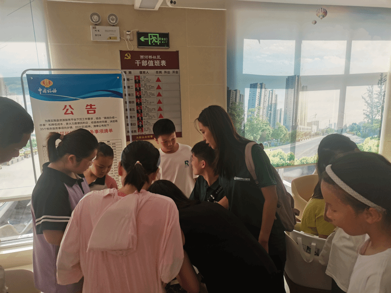 2023年7月10日,太陽(yáng)剛剛露出地平線(xiàn),實(shí)踐團的志愿者們便早早地來(lái)到了西河橋黨群服務(wù)中心,和提早來(lái)的同學(xué)們聊起了天。