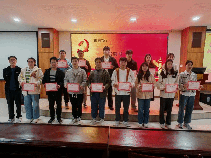 最后,輔導員張得運、唐瓊為2025屆黨支部成員頒發(fā)聘書(shū),并為2024屆黨支部書(shū)記贈送書(shū)籍。張得運強調,新一屆黨支部成員要樹(shù)立團隊意識和大局觀(guān)念,分工協(xié)作,共同推進(jìn)黨支部工作不斷向前發(fā)展。